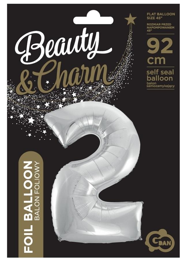 Balon foliowy Cyfra 2, srebrna, Beauty&Charm, 92 cm Wymiar balonów po napompowaniu: ok. 92 cm. Kolor: srebrny. Balony są przeznaczone do napełnienia helem. Napełnienie ich powietrzem spowoduje, że balony nie będą się unosić. Opakowanie zawiera 1 szt. Producent: GoDan S.A. Balony nie są napełnione helem.