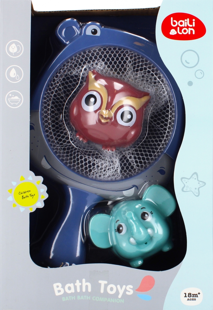 Zawartość zestawu 2 gumowe figurki-mix wzorów i kolorów, siatka do wody.