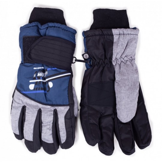 Narciarskie rękawiczki chłopięce w kolorze granatowo – czarnym z szarymi elementami. Wnętrze rękawiczki wykończone miłym polarem.Na nadgarstku zapinane na rzep, na górze zakończone dzianinowym ściągaczem, który zabezpiecza przed dostaniem się śniegu pod rękawiczkę. Na kciuku i wewnętrznej stronie dłoni posiadają dodatkową warstwę antypoślizgową ułatwiającą chwytanie.Rękawiczki narciarskie to obowiązkowe wyposażenie każdego miłośnika zimowego szaleństwa. Zapewniają dłoniom ciepło i suchość. Doskonałe do jazdy na nartach, snowboardzie czy sankach.