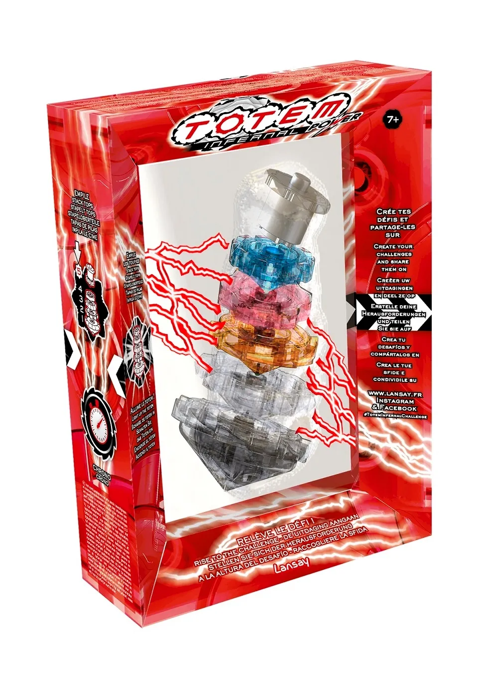 Te sprytne bączki są wyposażone w różnokolorowe diody LED, które zapalają się, gdy tylko ułożysz je w stos. Zakręć bączkami za pomocą wyrzutni, a następnie ułóż je w stosy, aby zbudować Wieżę Totemów i zapalić Totem!