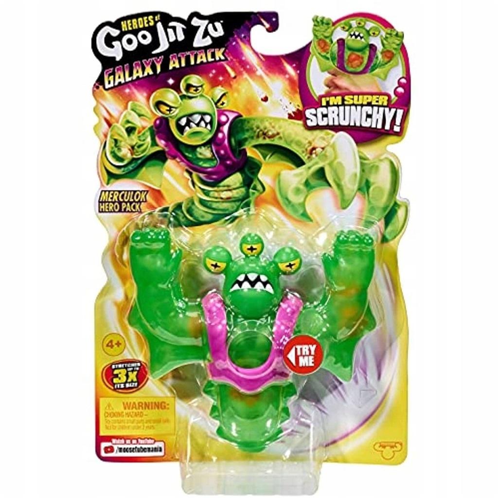 Ściśnij je i zobacz, jak ich ciała poruszają się i rozciągają. Sprawdź wszystkie unikalne wypełnienia i nowe funkcje, w tym wyskakujące oczy, dwukolorową Goo i nowe kształty! Heroes of Goo Jit Zu Galaxy Attack to zabawny sposób na zabawę dla dzieci figurkami akcji, które nie robią bałaganu. Te zabawki rozciągają się nawet trzykrotnie i są trwalsze niż kiedykolwiek wcześniej!