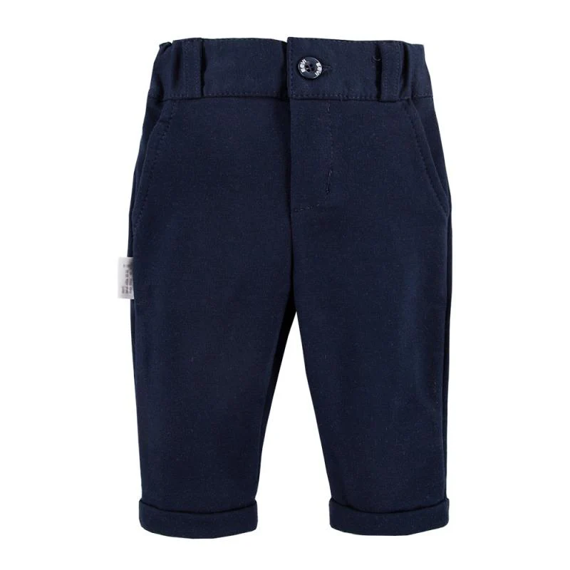 Spodnie chłopięce z kolekcji Ceremony wykonane z miękkiej i przyjemnej w dotyku szarej i granatowej dresówki.