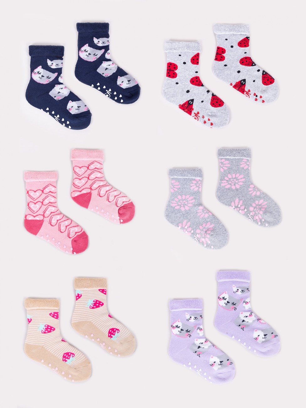 Dziecięce skarpety dostępne w praktycznym sześciopaku. W różnych kolorach, z dziewczęcymi motywami.