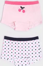 Dziewczęce bokserki dostępne w dwupaku, zapakowane w eleganckie pudełko. W dziewczęcych kolorach, z motywem wisienek i kropek. Dedykowane dla dziewczynek, które nie lubią krótko skrojonych fig i preferują bieliznę w postaci dobrze dopasowanych bokserek. Posiadają szeroką gumkę w pasie. Elastyczne, nie upijają, dzięki temu każda większa dziewczynka będzie czuła się w nich komfortowo.