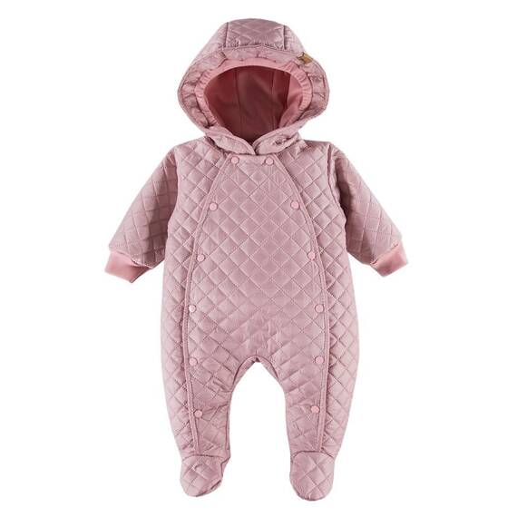 Doskonale ochroni dziecko przed chłodem, deszczem oraz wiatrem. Posiada dodatkową warstwę ocieplacza. Wewnątrz wyłożony jest bawełną. W kapturze kombinezonu została wszyta gumka, która zapobiega odstawaniu kapturka i chroni główkę dziecka przed zimnem. Kombinezon zapinany jest na napy.
