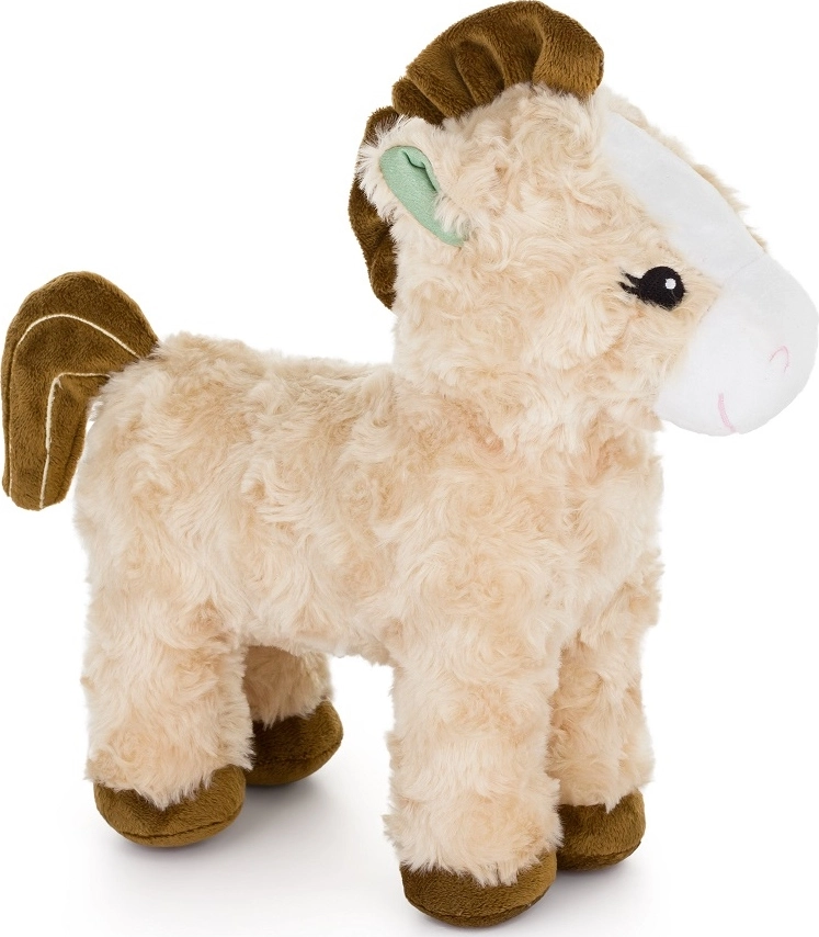 Konik wykonany został z bardzo przyjemnego materiału, z krótkim włosiem. Jeśli się zabrudzi, można go wyprać ręcznie w temperaturze 30°C. Pobudza wyobraźnię u dzieci oraz rozwija umiejętności poznawcze dzięki zróżnicowanym kształtom i fakturom.