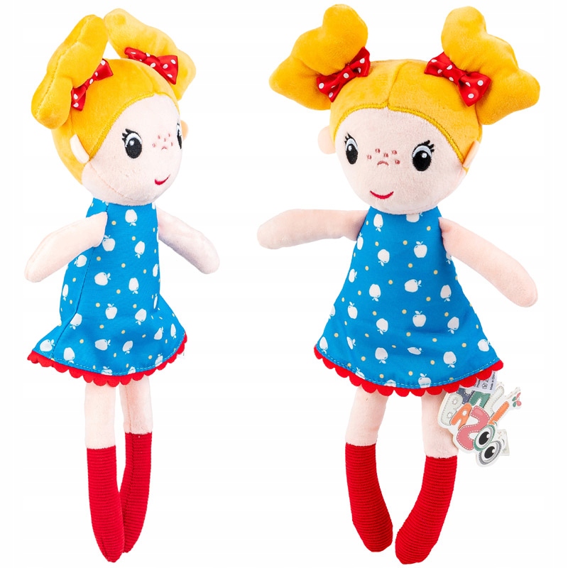 Materiałowa laleczka sprawdzi się wspaniale zarówno w roli przytulanki jak i towarzyszki aktywnych zabaw. Lidka ubrana jest w śliczną sukienkę, uszytą ze zróżnicowanych materiałów, co pozwala stynulować zmysł dotyku dziecka oraz wpływa korzystnie na rozwijanie jego zdolności poznawczych.
