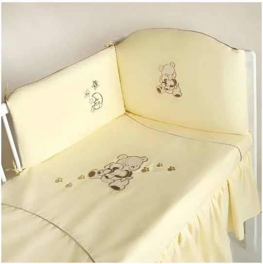 Komplet pościeli 3-elementowej: Poszwa: 120 x 90 cm Poszewka: 40 x 60 cm Ochraniacz: 40 x 180 cm NA SUWAK (poszycie: bawełna 100%, wypełnienie: poliester 100%)