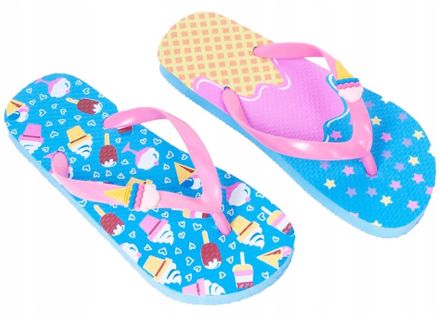 Nowe lekkie dwukolorowe klapki piankowe szybko schnące na lato, na basen, na co dzień polskiej marki Yo!Club. Klapki są dwukolorowe, z motywem lodów, tworzą razem wesoły nierozłączny duet. Paski gumowe, ozdobione aplikacją 3D w postaci lodów, stabilnie utrzymują obuwie na stopach. Dzięki piankowej podeszwie są lekkie i wygodne. Rozmiar wkładki 19cm.