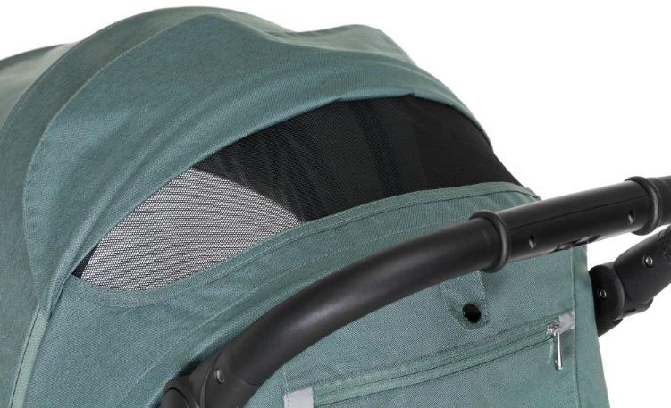 Daszek wózeczka jest niezwykle obszerny, dzięki czemu z łatwością zapewnimy dziecku dogodne warunki do spacerku, w czasie mocnego nasłonecznienia, wiatru, lub lekkiego deszczu. Został on wyposażony w filtr UPF50+, co przekłada się na ochronę skóry dziecka przed promieniowaniem UV.
