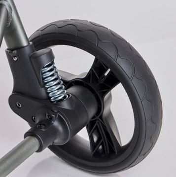Dzięki temu, że złożony wózek jest tak poręczny, same na myśl przychodzą dalsze spacerki. Leśne szlaki i żwirowe ścieżki w parku, nie będą stanowić żadnego problemu dzięki bezobsługowym kołom, które nie wymagają pompowania i są odporne na przebicia. Koła zostały stworzone z miękkiego materiału, który jest lekki i świetnie amortyzują drgania.