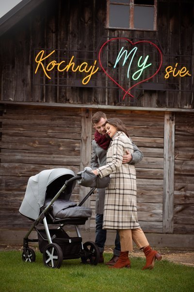Raczka wózka posiada łamaną regulację wysokości, dzięki czemu każde z was może wyjść z maluszkiem na spacer, nawet jeśli sporo różnicie się wzrostem.