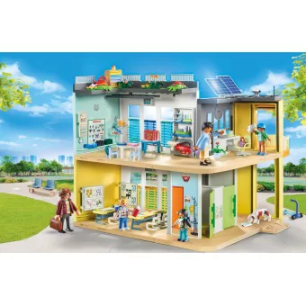 Duża szkoła z serii City Life od Playmobil jest 282-elementowym zestawem. Duży szkolny budynek z windą, meblami i wyposażeniem jest idealny do pomysłowej zabawy w odgrywanie ról.