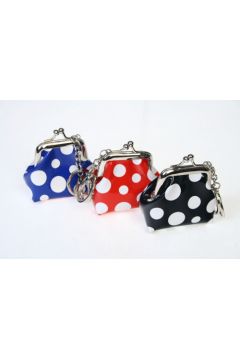 Portmonetka na pieniądze i brelok w jednym. W środku wyścielana miękkim materiałem. Portmonetka posiada grafikę w duże białe groszki i występuje w czterech wersjach kolorystycznych czarnym, granatowym, czerwonym i r oacute żowym. Cechy rozwojowe u dziecka rozszerza doświadczenia, rozwija wyobraźnię, wyrabia umiejętność przystosowania się do otaczającej rzeczywistości, kształtuje cechy osobowości systematyczność, wytrwałość , wyrabiać u dziecka samodzielność i wytrwałość przy realizowaniu podjętych zadań, wzmacnia jego motywację, bogaci jego życie emocjonalne, przygotowuje do czynnego udziału w życiu społecznym. Wiek 3+.