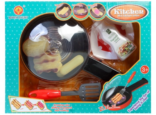 Artykuły mięsne wykonane zostały ze specjalnego tworzywa, zmieniającego kolor przy dłuższym kontakcie z patelnią co imituje proces gotowania lub smażenia.