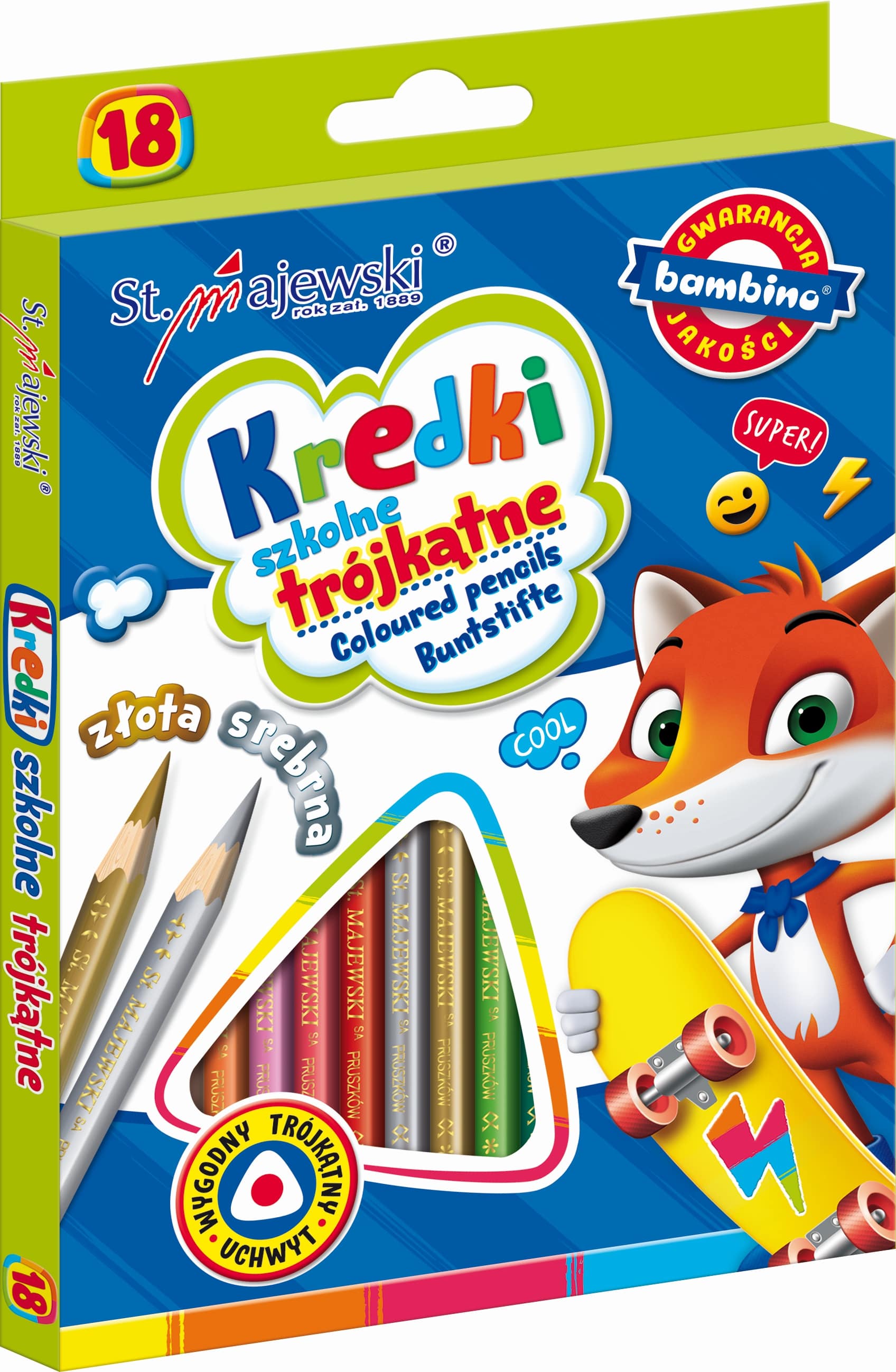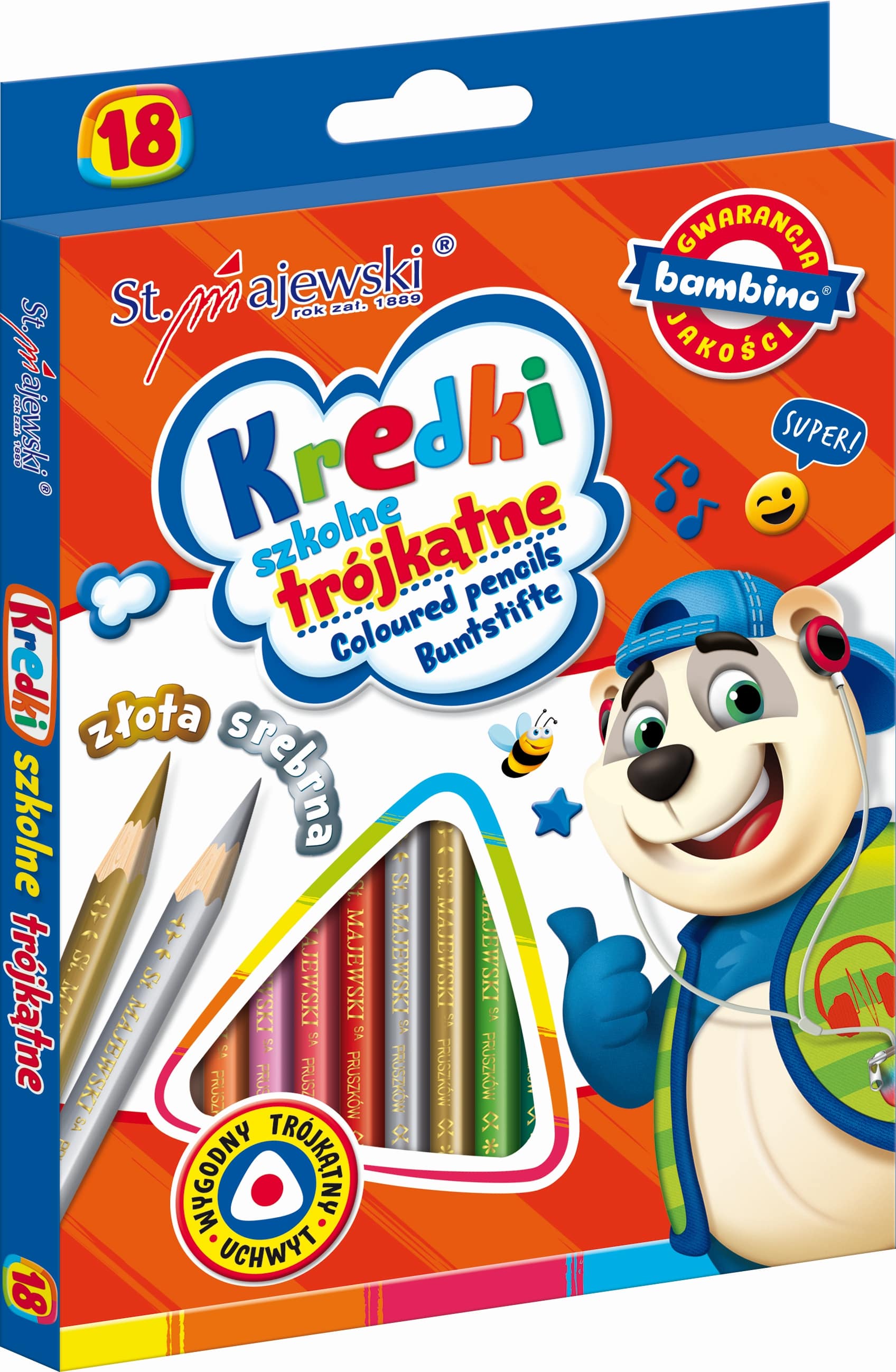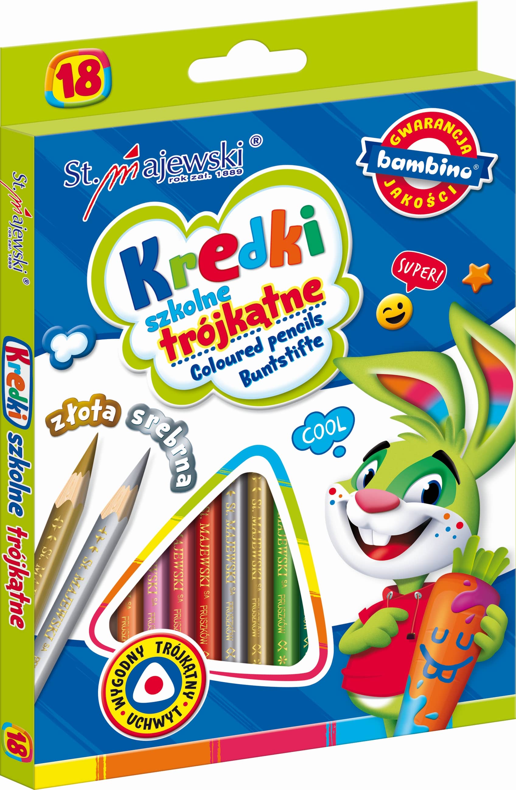 St. Majewski Kredki Ołówkowe Trójkątne Bambino 18 Kolorów