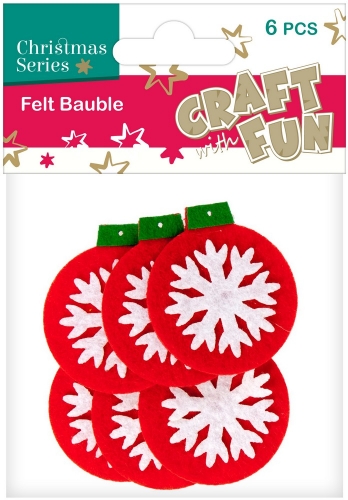 Opakowanie zawiera 6 sztuk aplikacji filcowych w kształcie bombki.