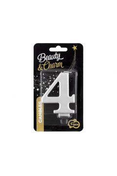 Świeczka cyferka 4, metalik srebrna, 8,0 cm