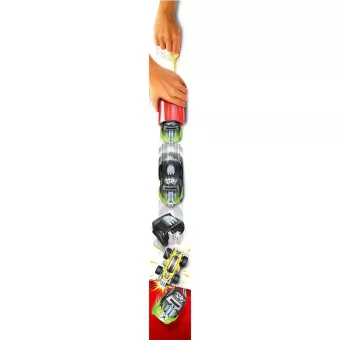 Boom City Racers to najbardziej wybuchowe samochody w historii! Samochody wyróżniają się dzięki opakowaniu stylizowanemu na fajerwerki i wybuchowej zabawie! Zasilane za pomocą linki wyrzutni i koła napędowego, samochody pokonują niesamowite trasy z superszybką prędkością. Przy zderzeniu z przeszkodami samochód WYBUCHA! Złóż go ponownie i zacznij wyścig od nowa...