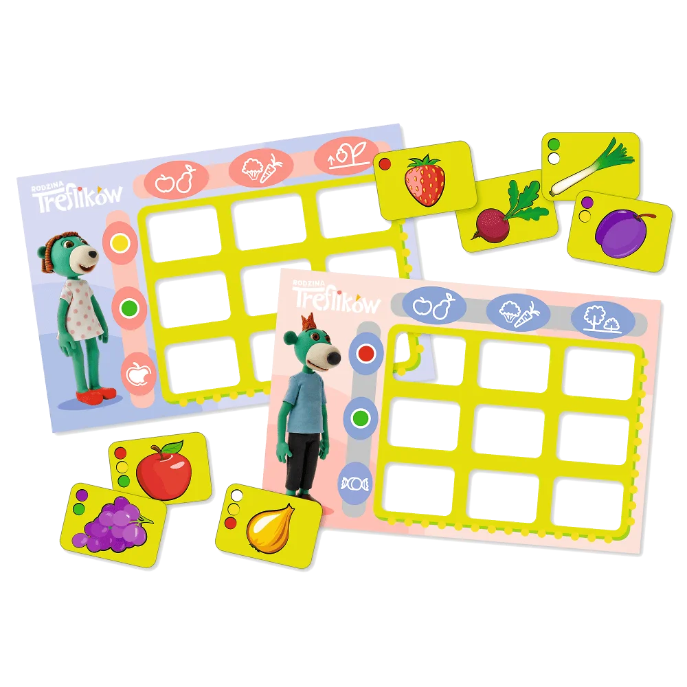 Trefliki poznaja: Warzywa i owoce to wyjątkowa gra edukacyjna dla dzieci, która w zabawny sposób pomaga poznać warzywa i owoce. Gra ćwiczy zdolności poznawcze, spostrzegawczość i logiczne myślenie. Pomaga również rozwijać słownictwo i wspomaga koncentrację. Gra została zaprojektowana w oparciu o licencję popularnego serialu dla dzieci pt. Rodzina Treflików.