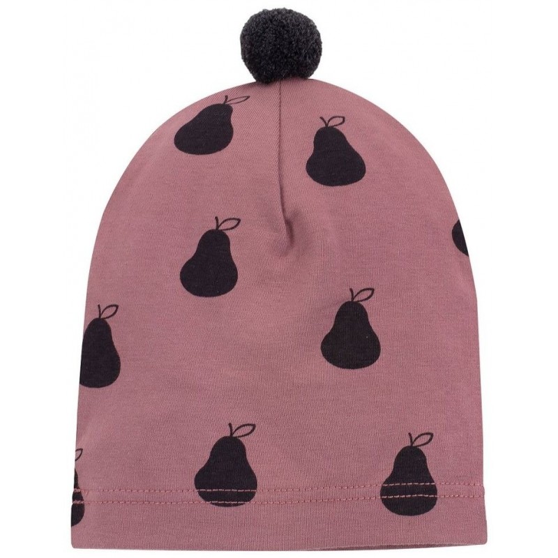 Czapeczka niemowlęca wykonana z jednowarstwowej bawełny w ciemno różowym kolorze. Zdobiona nadrukiem w gruszeczki. Uroku dodaje również uroczy pomponik. Czapka doskonale ochroni wrażliwą główkę dziecka przed chłodem i wiatrem.