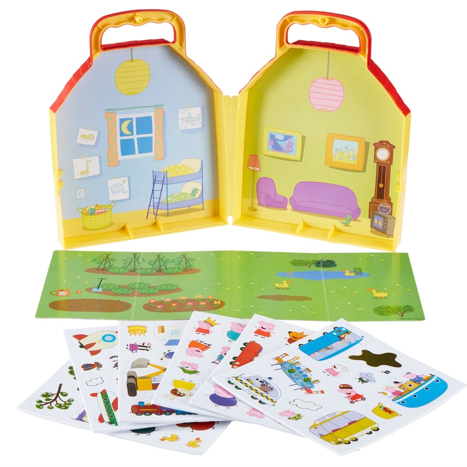 Zestaw Świnka Peppa - Domek + piankowe naklejki. Przenieś się do świata Świnki Peppy i baw się razem z nią! Aż 100 piankowych naklejek, zamkniętych w domku, dzięki którym stworzysz niesamowite scenariusze zabawy. Do zestawu dołączona jest składana plansza na której możesz stworzyć kolejne historie ze Świnką Peppą i jej przyjaciółmi. W zestawie: - składany domek - 100 piankowych naklejek - składana plansza Wymiary opakowania: 18x5x23cm Wiek: 3+