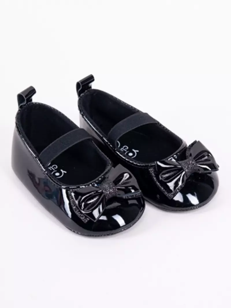 Śliczne dziewczęce balerinki w klasycznym kolorze czarnym. Gładkie, z połyskiem, dzięki czemu wyglądają bardzo elegancko. Dodatkowo ozdobione efektowną kokardką z przodu bucika. Idealnie sprawdzą się podczas wszelkich uroczystości czy sesji zdjęciowych.