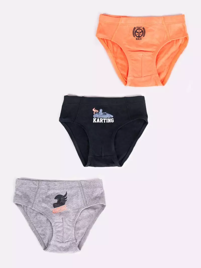 Chłopięce slipy dostępne w trójpaku, zapakowane w eleganckie pudełko. W chłopięcych kolorach, z motywem wyścigów kartingowych. W pasie znajduje się szeroka i delikatna gumka, która sprawia, iż majteczki pozostają w miejscu, nie podrażniając skóry dziecka. Dodatkowo są delikatnie opinające, dzięki temu każdy większy chłopiec będzie czuł się w nich komfortowo.