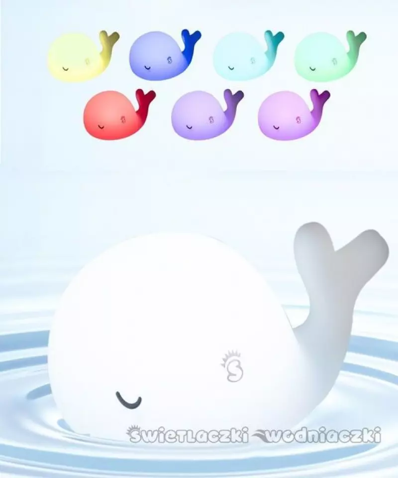 Lampka Wielorybcio to nie tylko zabawa w wodzie, ale także lampka pomocna w usypianiu.