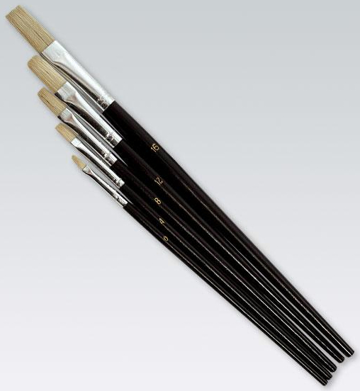 Komplet 5 pędzli płaskich do farb olejnych drewniane uchwyty w zestawie rozmiary 0, 4, 8, 12, 16