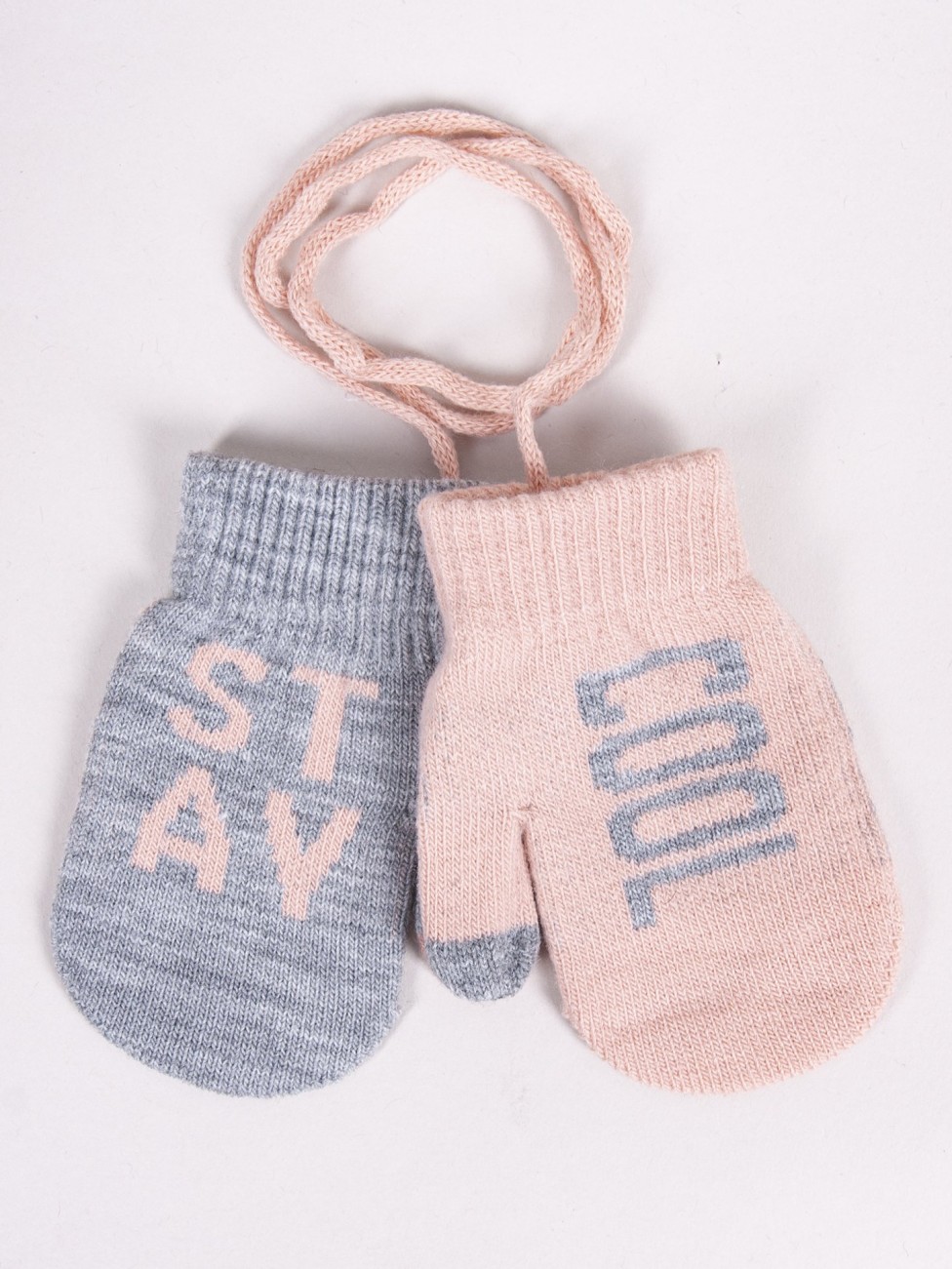 Praktyczne, dziewczęce rękawiczki w kolorze szarym i różowym z napisem: STAY COOL. Z pozoru nie do pary, a pasują do siebie idealnie. Jednowarstwowe, w środku wykończone delikatnym meszkiem. Świetnie prezentują się na dłoniach.