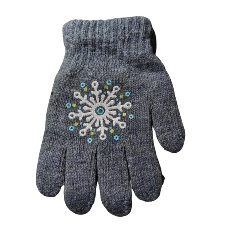 Rękawiczki pięciopalczaste, zakończone delikatnym ściągaczem, który nie ściska rączki.