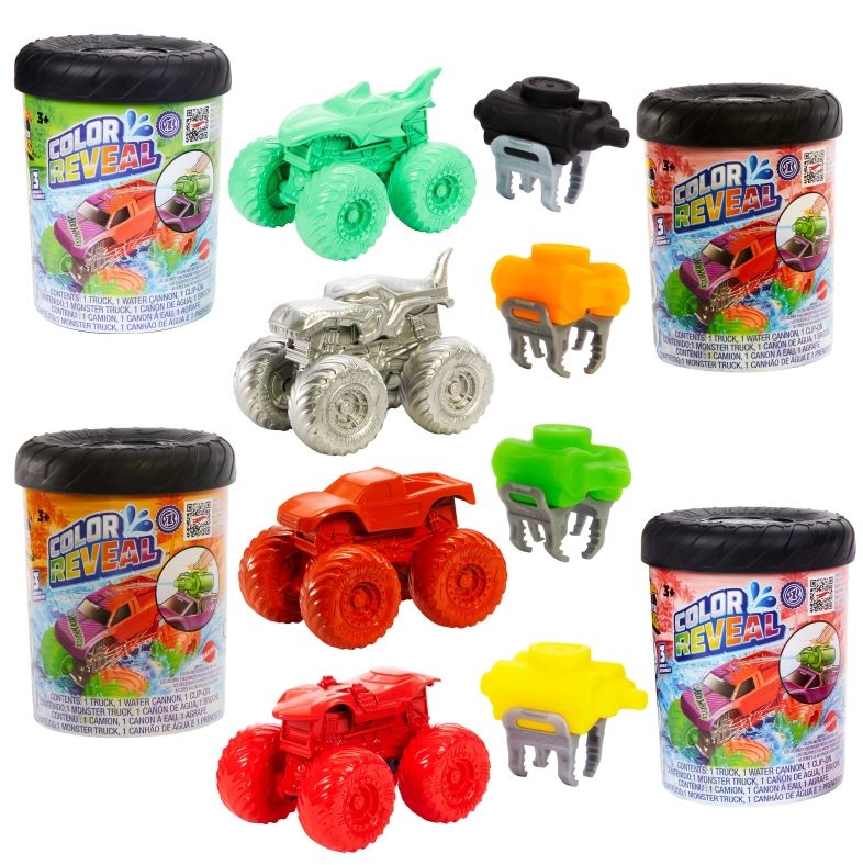 Pojazdy Hot Wheels Monster Trucks Color Reveal zapewniają zabawę pełną niespodzianek. W beczce znajduje się 1 samochodzik Hot Wheels Monster Trucks Color Shifters w skali 1:64 pokryty specjalną farbką Color Reveal oraz przyczepiany zbiornik na wodę. W ramach pierwszej niespodzianki napełnij beczkę wodą i zanurz Monster Trucka, aż zmieni kolor wody. Potem go wyciągnij, by sprawdzić jego wygląd! Masz ochotę na kolejną zmianę? Napełnij beczkę zimną wodą i zanurz pojazd, aby podziwiać magiczną zmianę koloru. Użyj ciepłej wody, aby wrócić do pierwotnego wyglądu. Za pomocą przyczepianego zbiornika na wodę możesz opryskiwać inne pojazdy Color Shifters w epickim wodnym starciu, aby zmienić ich wygląd. Dzieci będą chciały zebrać całą kolekcję! Sprzedawane oddzielnie w zależności od dostępności. Kolory i elementy dekoracyjne mogą się różnić.