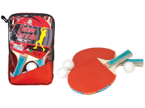 Rakietki do ping-ponga z 3 piłeczkami w pokrowcu Mega Creative. Podstawowy zestaw dwóch rakietek oraz trzech piłeczek do ping ponga Mega Creative dla osób znających przygodę z tenisem stołowym. Paletki wykonane są z przyjaznej dla amatorów konstrukcją deski oraz kombinacją okładzin: czerwona z czopami do wewnątrz i czarna gładka na zewnątrz. Pozwoli to na dokładniejszy odbiór serwisu przeciwnika i grę z dużą kontrolą piłki. Do rakietek dołączone są trzy plastikowe, białe piłeczki, skierowane głównie do graczy hobbystycznych, poszukujących łatwych do grania piłek, ich krągłość i wytrzymałość czyni je odpowiednimi dla początkujących zawodników. Zestaw został wykonany z drewna, gumy oraz plastiku. Gra w ping ponga rozwija sprawność fizyczną, koordynację ruchową i uczy dzieci zdrowej, sportowej rywalizacji. Komplet jest zapakowany w pokrowiec zamykany na zamek błyskawiczny. Cechy zestawu: - świetny zestaw dla osób zaczynających przygodę z tenisem stołowym, - komplet został wykonany z drewna, gumy oraz plastiku, - piłki są odpowiednie dla początkujących zawodników, - rozwija zdolności motoryczne i koncentrację, - uczy dzieci zdrowej, sportowej rywalizacji, - idealny prezent dla dzieci od 14 lat.
