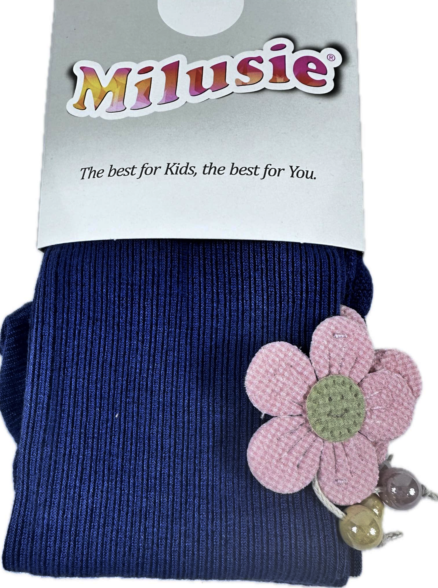 Milusie Rajstopy Dziewczęce Wiskoza Prążek Kwiatek 68 - 158 Granatowe