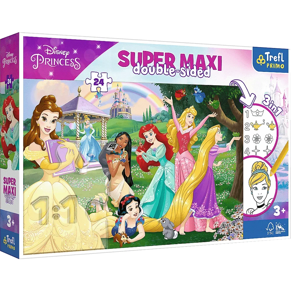 Puzzle Super Maxi 24 to połączenie świetnej zabawy z radością z samodzielnego tworzenia. Dostępne są wzory z ulubionymi bohaterami animowanych filmów i seriali dla dzieci.