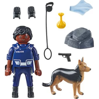 Policjant z psem tropiącym jest zestawem, który idealnie nadaje się do emocjonujących misji policyjnych w dziecięcym pokoju. Mądry owczarek wącha kawałek ubrania, który należy do zaginionej osoby. Czas ruszać za zapachem!