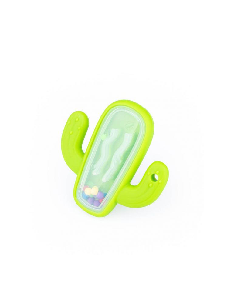 Urocza zabawka w kształcie kaktusa łączy w sobie walory grzechotki i gryzaka! We wnętrzu kaktusa kryje się mnóstwo kolorowych, grzechoczących kuleczek, a jego ramiona zdobią wypustki, które przyniosą ulgę ząbkującemu maluchowi. Kształt zabawki jest idealnie dopasowany do małych rączek, co ułatwia najmłodszym chwytanie grzechotki.