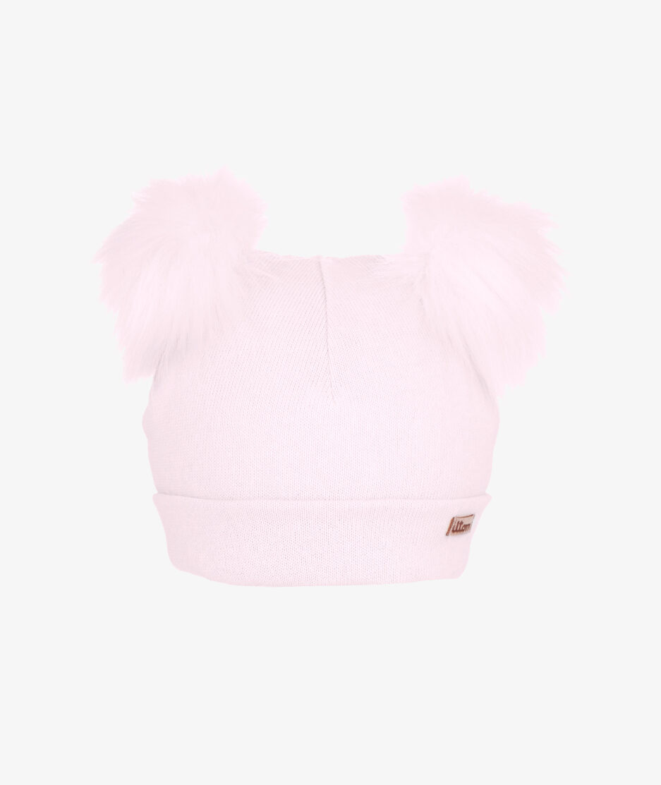 Iltom Zimowa Ocieplana Czapka Dzianina Bawełniana Akrylowe Pompony Różowa