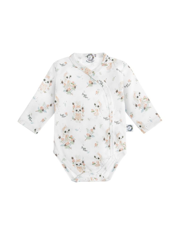 Body wykonane z delikatnej, mięciutkiej bawełny, starannie uszyte. Posiada napki przez całą długość oraz w kroku pozwalające na szybkie, sprawne przewinięcie i przebranie dziecka. Z tej serii można dokupić również inne ubranka.