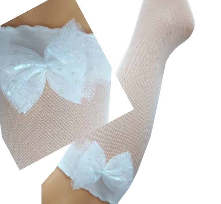 Milusie Podkolanówki Dziewczęca Biała Siateczka Kokarda