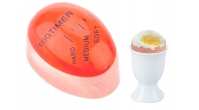 Włóż minutnik do garnka razem z jajkami i obserwuj jak zmienia kolor podczas gotowania! Czerwony kolor zanika przez długość spędzonego czasu we wrzącej wodzie - jednocześnie informuje nas o stopniu twardości naszych jajek. Czerwony kolor powoli zanika do środka tworząc "żółtko", a na obrzeżach minutnika pojawia się biały kolor, jak białko jajka.