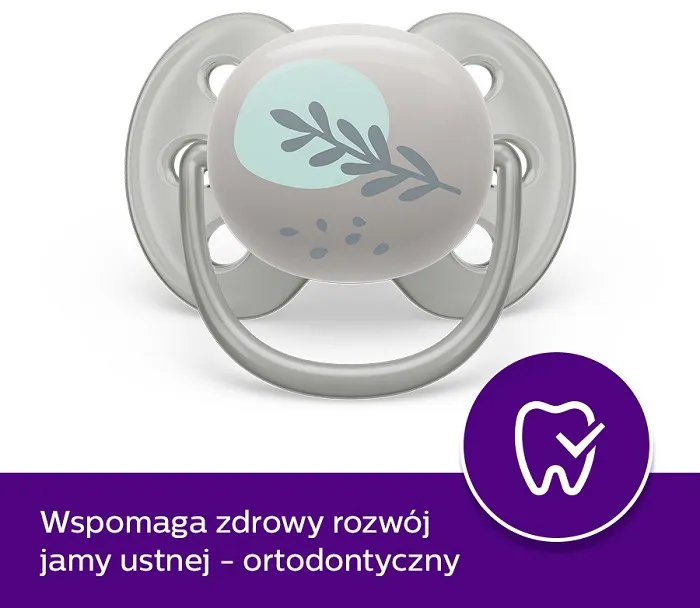 Smoczek ortodontyczny Phlips Avent Ultra Soft jest symetryczny i miękki, dlatego wspiera naturalny rozwój jamy ustnej.