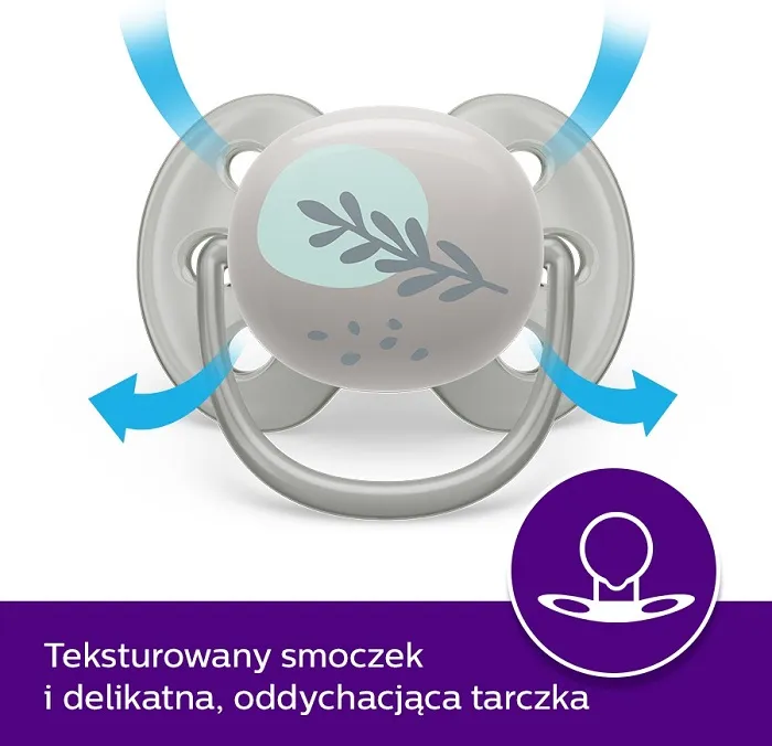 - wspierają naturalny rozwój jamy ustnej - teksturowany smoczek silikonowy został stworzony na podobieństwo piersi matki, wywołując naturalne odczucia u dziecka;