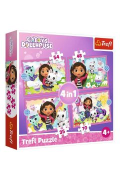 Przygody Gabi 4 w 1 to zestaw czterech układanek dla dzieci od Trefl. Puzzle te przedstawiają przygody Gabi z popularnej bajki "Koci Domek Gabi". Każda z czterech układanek ma różną ilość elementów (35, 48, 54 i 70 elementów), co pozwala na stopniowe wprowadzanie dziecka w świat układania puzzli.