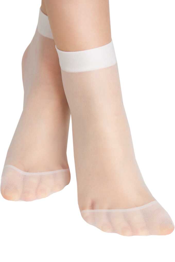 Dziewczęce, białe i gładkie skarpetki. Skarpetki mają rozmiar uniwersalny, grubość 20 DEN. Skarpetki pakowane są w 2 paku.