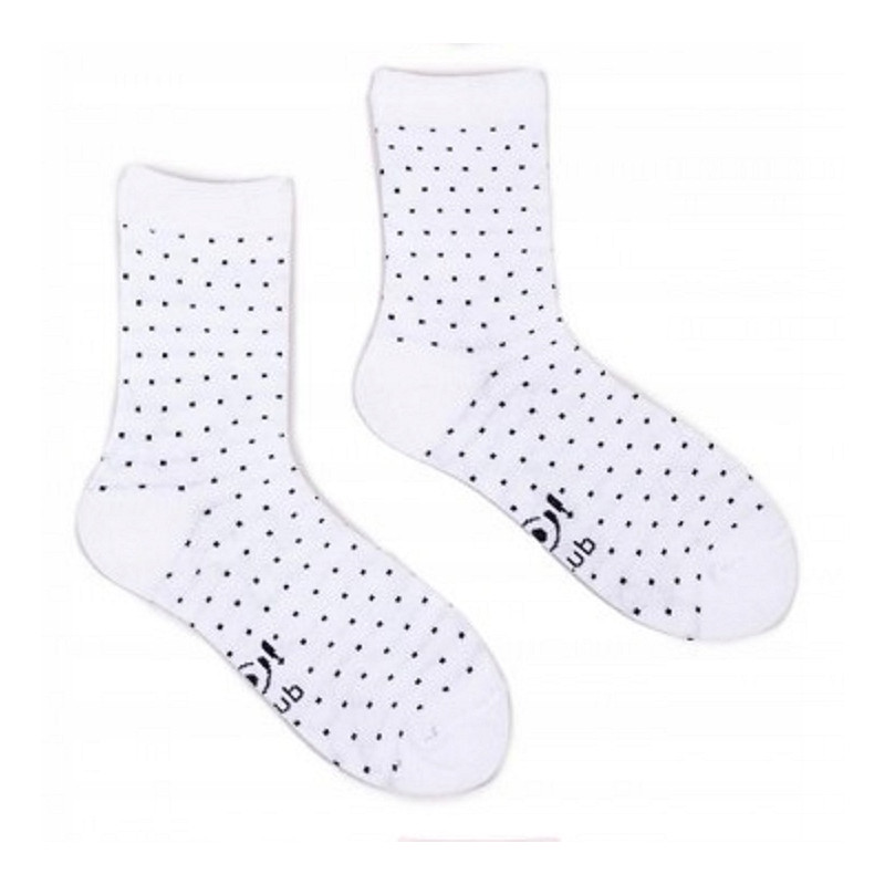 Skarpetki w stonowanej, wesołej kolorystyce, ozdobione na całości delikatnymi kropeczkami. Posiadają klasyczny krój, za kostkę. Są miłe w dotyku, dobrze układają się na stopie.