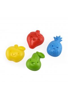 Zestaw 4 foremek w kształcie owoców: jabłko, gruszka, truskawka i ananas.