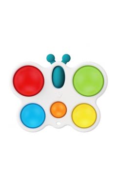 Wesoły motylek odpręży malucha zabawą w kolorowe klikanie! Ta zajmująca czynność stanowi świetną rozrywkę, która dodatkowo pomaga ćwiczyć paluszki. Motylek posiada jedno owalne i pięć okrągłych, kolorowych pól. Zadaniem najmłodszych jest przepchnąć wszystkie wypukłe elementy na drugą stronę zabawki. Czynności tej towarzyszyć będzie zabawny odgłos klikania.