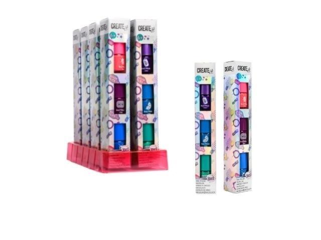 Zestaw 3 lakierów od Create it! w ciekawych kolorach pozwoli wyróżnić się pięknymi paznokciami. Lakiery mają holograficzne wykończenie dzięki czemu pięknie mienią się w słońcu. 3 kolory w zestawie pozwolą na większą kreatywność, możesz wybrać jeden kolor i wykończyć go ciekawym wzorem, lub pomalować paznokcie na wszystkie dostępne kolory.